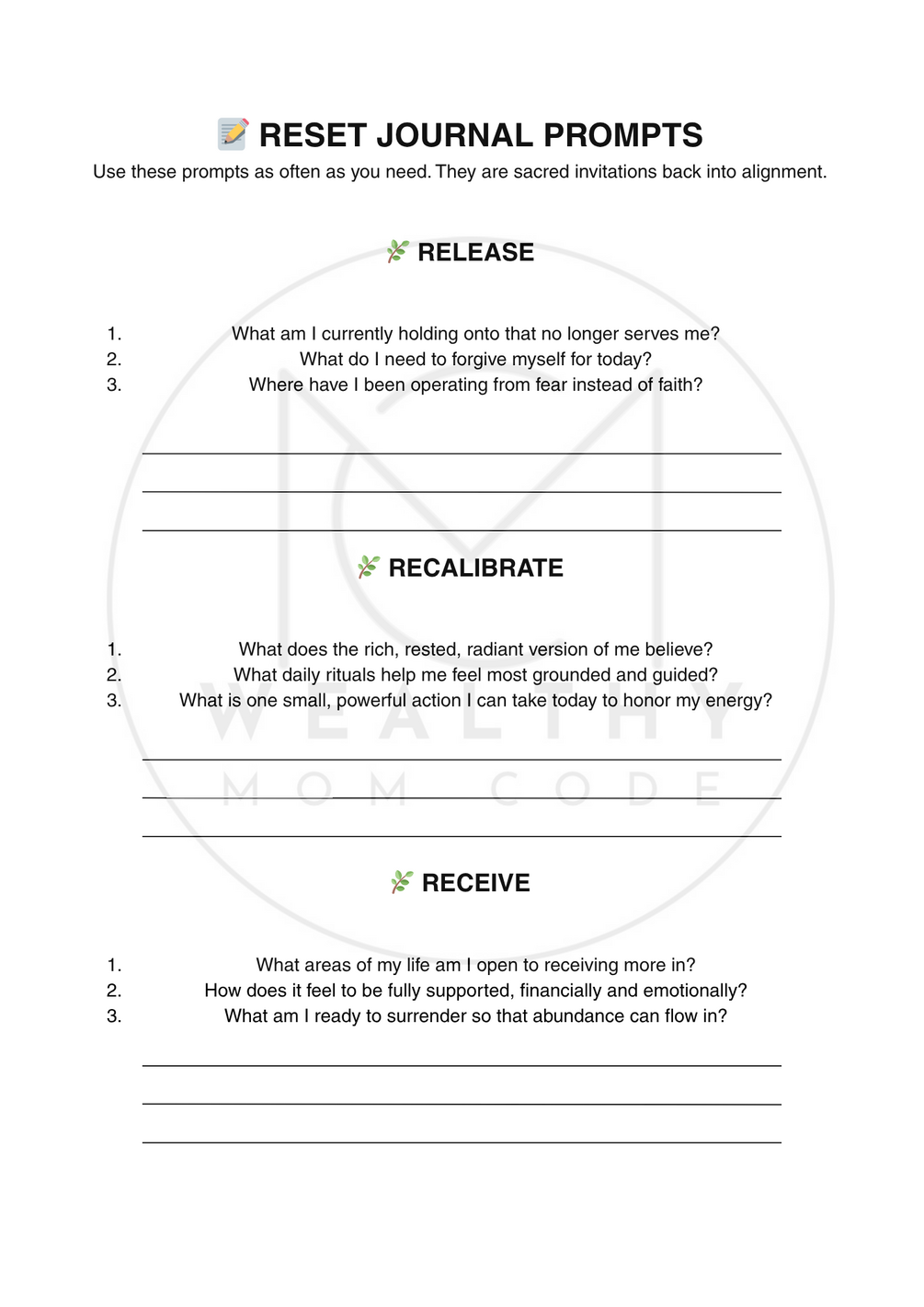 - You’ll be lovingly invited into our sacred sanctuary—The Wealthy Mom Code—for more support, magic, and momentum.